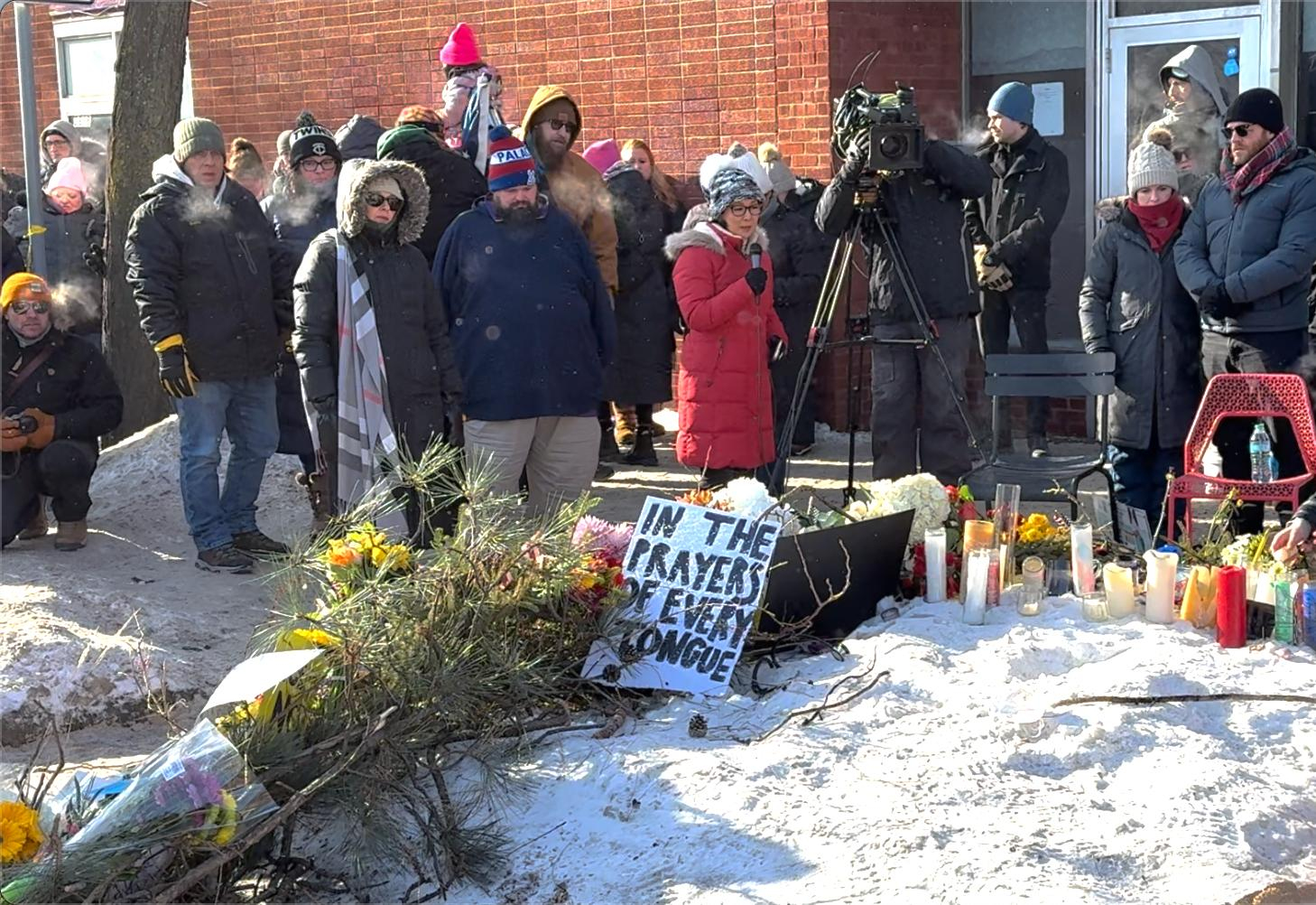 1月25日,在好意思国明尼苏达州明尼阿波利斯,东谈主们缅怀枪击事件遭难者(手机相片)。新华社发