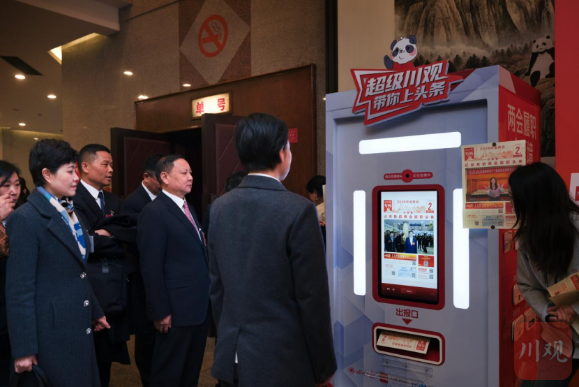 2月2日,四川省政协十三届四次会议开幕。在会场的新闻中心荟萃采访区,川不雅新闻的AI互动居品——“两会头条”互动影相打印机成为委员们列队打卡的爆款。