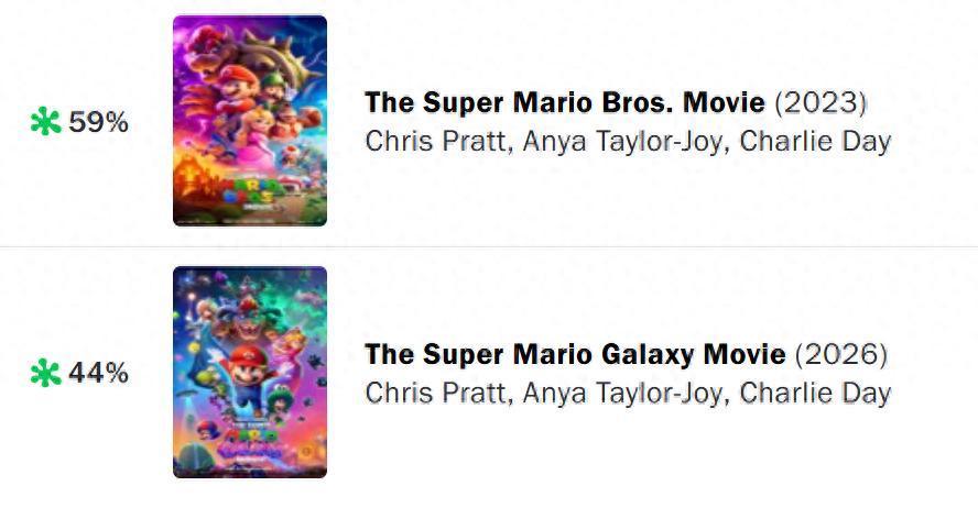 今天是《超等马力欧星河大电影》在北好意思上映的日子。仅以现在的开局而言,该作的反响显然不如2023年上映的前一部马力欧大电影,烂番茄指数44%,MC媒体评分更是唯有37分。